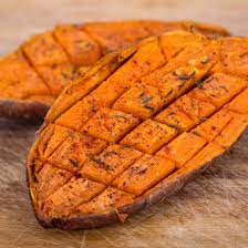 • Lavez bien les patates douces. Fendez-les en deux et quadrillez leur chair.