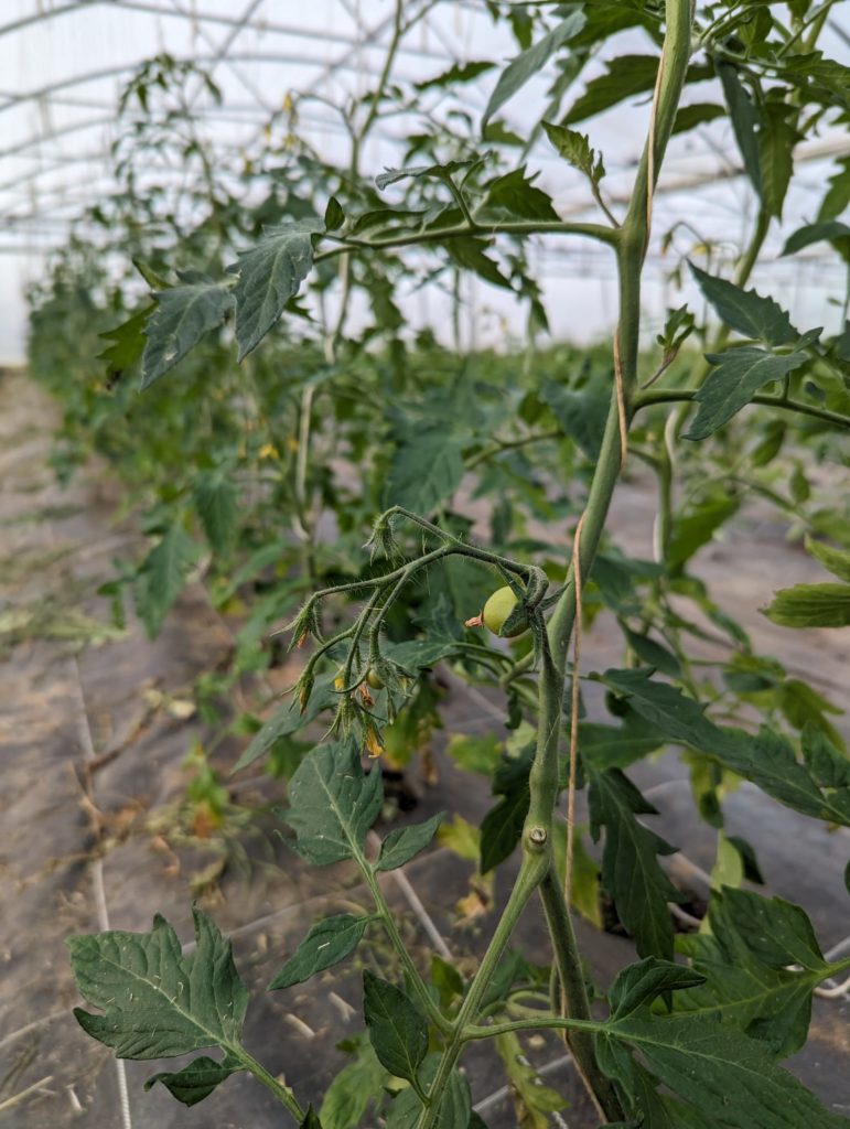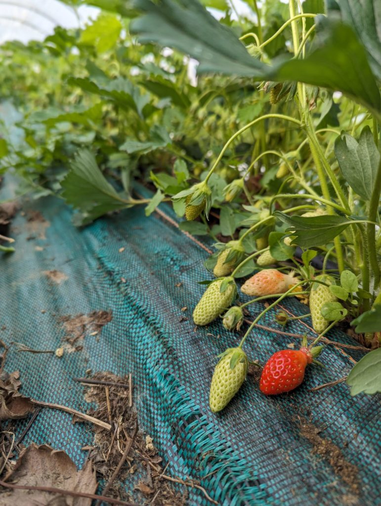 Sous les serres les petits pois, les fraises et les tomates prennent des formes.