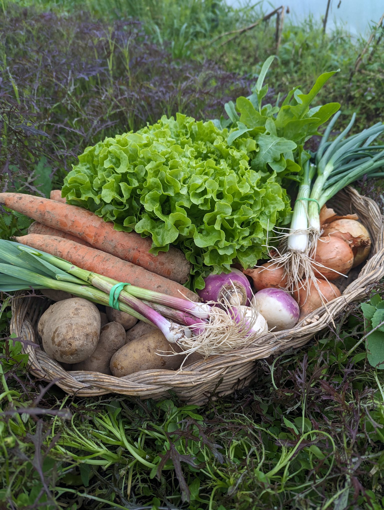 En fonction des récoltes et de la météo, le panier peut être modifié au dernier moment. Les légumes sont certifiés agriculture biologique et proviennent de la ferme de Gérald Céleste et Romain Jerger : Aux Légumes Célestes à Férolles (45).