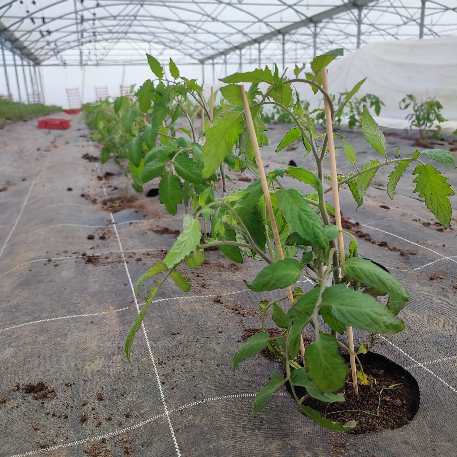 « Le temps restant pluvieux, nous en profitons pour préparer l’été dans les serres : la semaine dernière, nous avons planté tomates, concombres, aubergines et ananas. Un peu de patience : les premières tomates arriveront fin juin ! »
