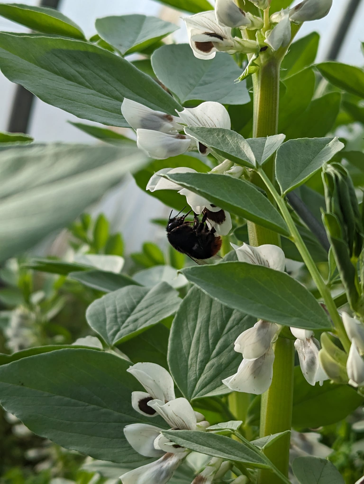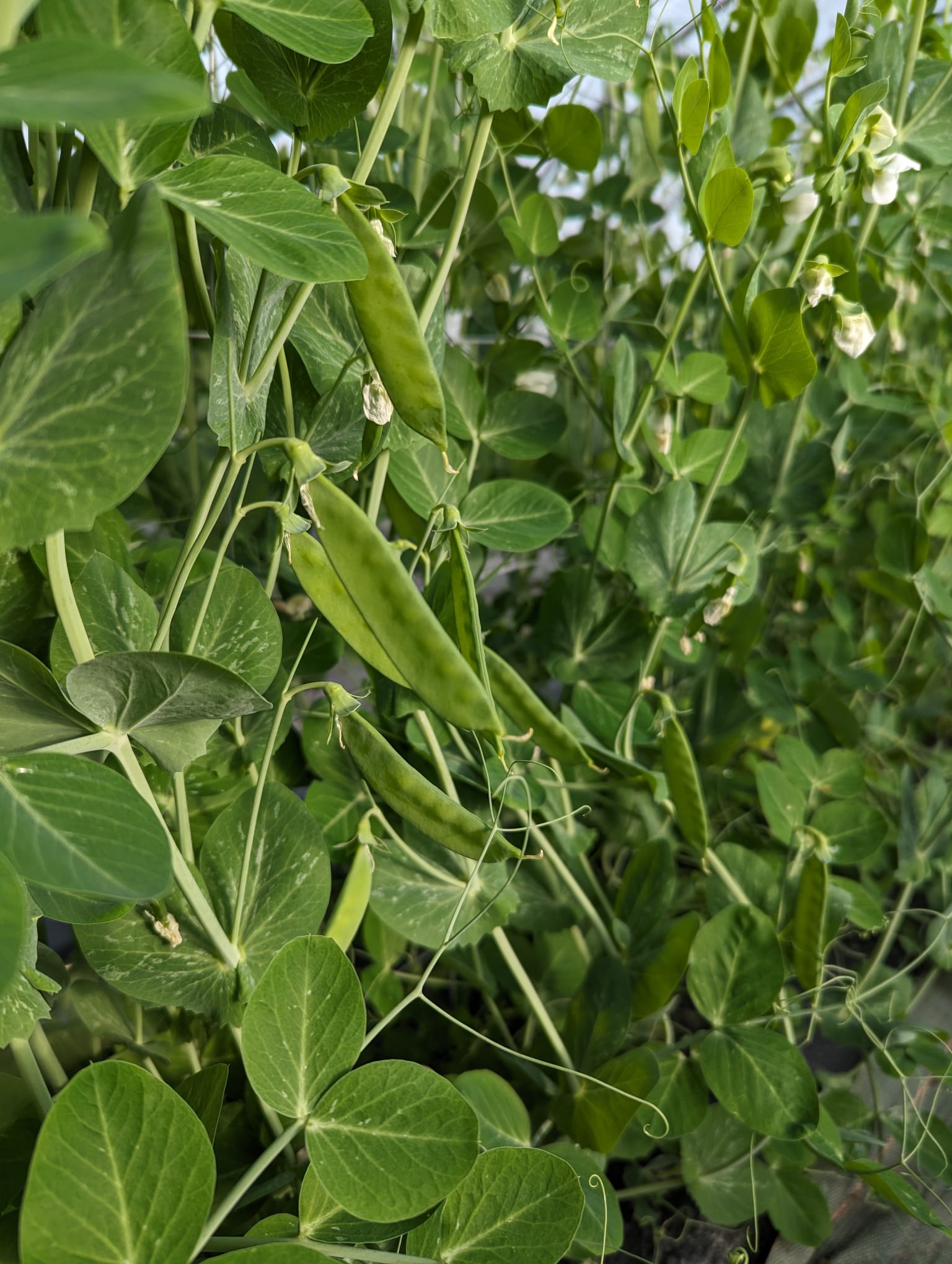 Sous les serres les petits pois, les fraises et les tomates prennent des formes.
