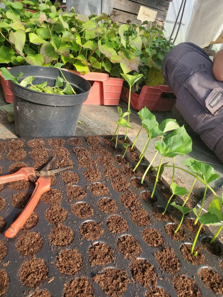 Nous avons également préparé des plants de patates douces (voir photo) et semé des panais.