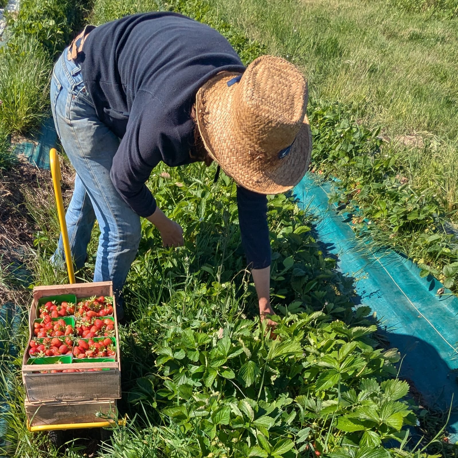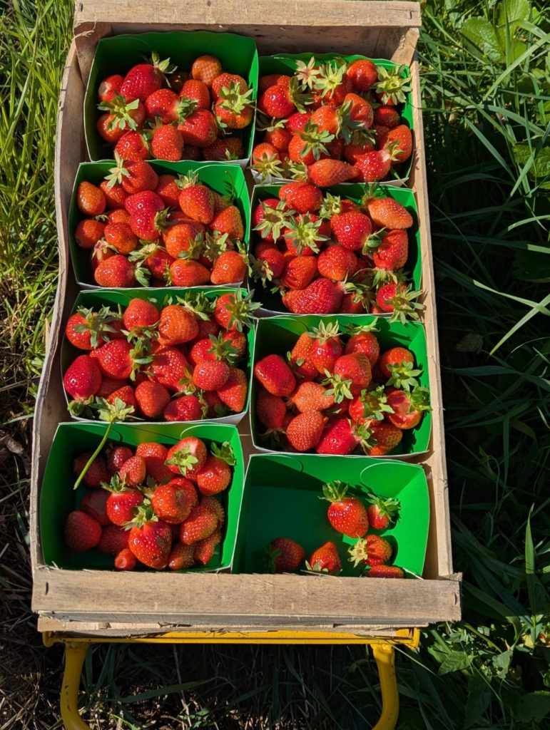 Avec le soleil et les températures actuelles, les fraisiers en extérieur ont été particulièrement productifs. Nous avons également dû intensifier la régularité de nos arrosages.