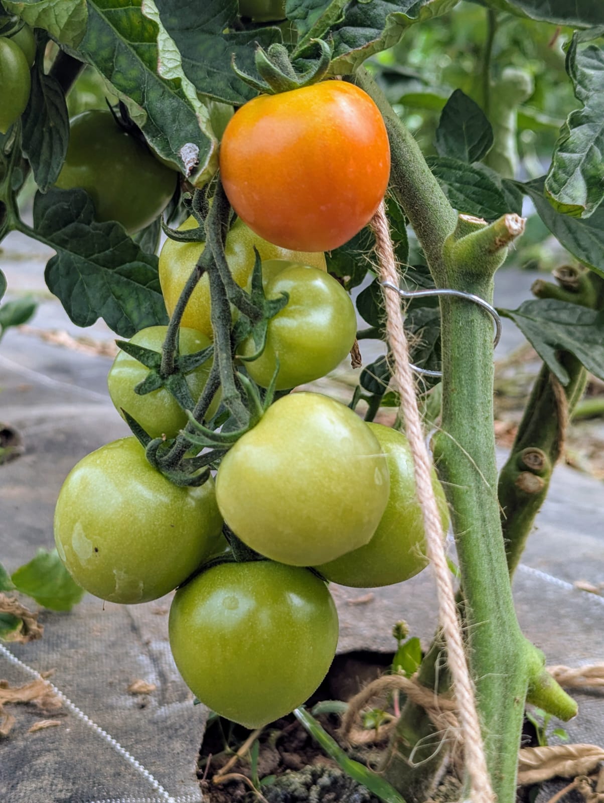 Ce lundi, nous avons eu la surprise de découvrir les premières tomates commençant à rougir. »
