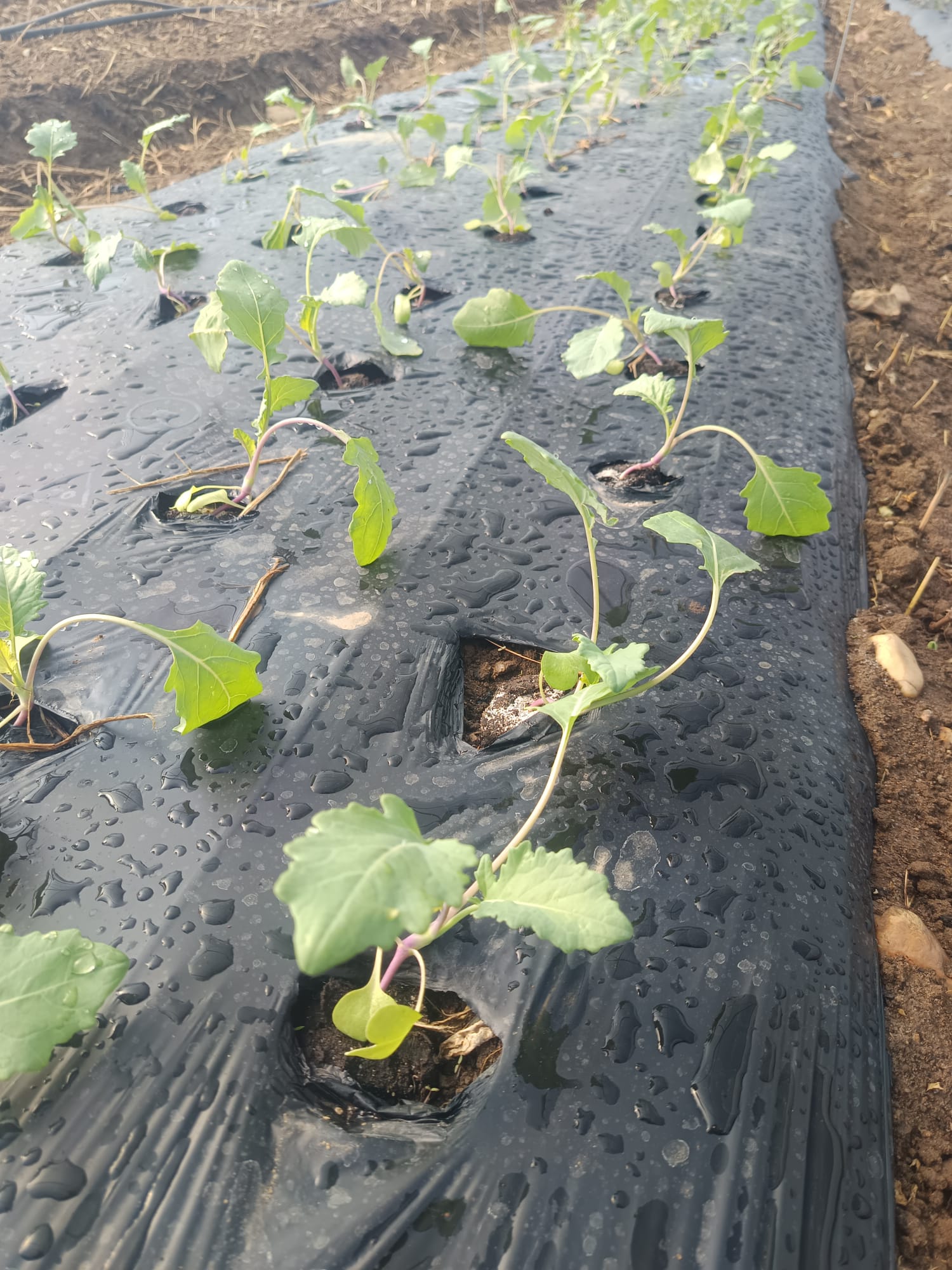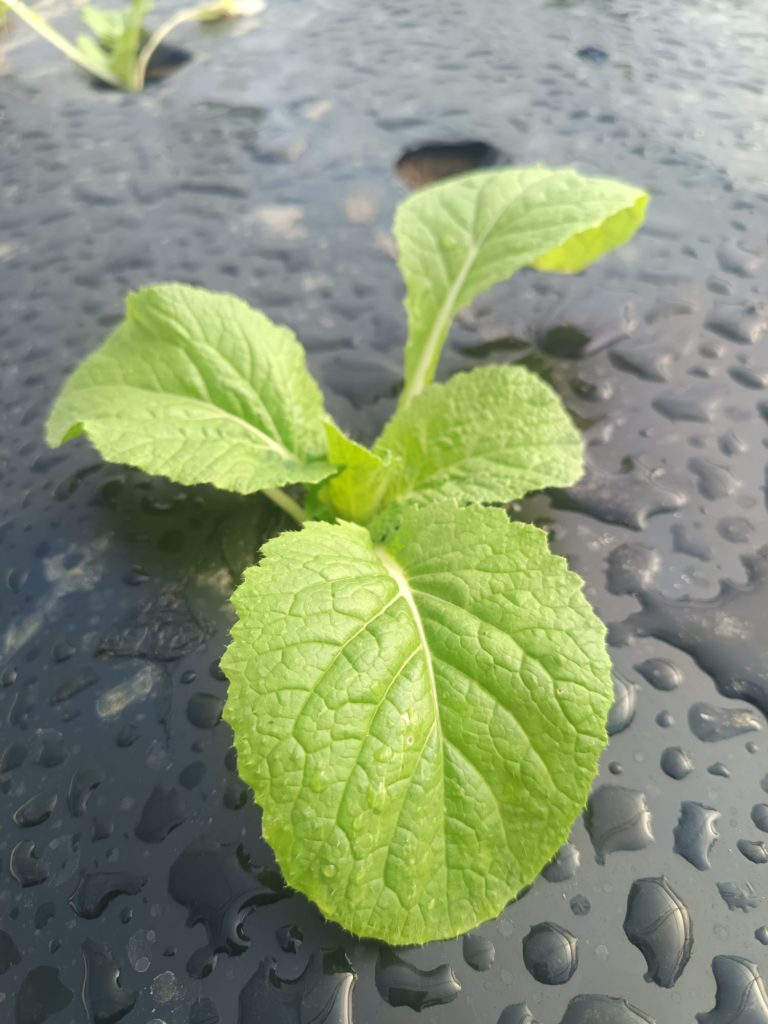 | Cette semaine, nous avons commencé la récolte des pastèques en plein champ. Côté équipe, Mathéo et Julien font leur retour, tandis que Gérald et Bérengère sont en congé. Nous retrouvons un rythme de travail normal, avec des températures de saison et sans jour férié. Sous les serres, les plantations se renouvellent avec du chou-rave (à droite), du fenouil (à gauche) et du chou chinois (en gros plan). En extérieur, ce sont les épinards que vous retrouverez dans vos paniers à la fin de l’été et en automne. |