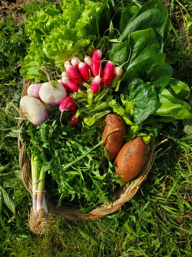 La nature se réchauffe et se réveille : nous allons pouvoir varier de plus en plus le contenu de vos paniers. Ce matin, nous avons récolté bottes de légumes nouveaux et épinards pour vous régaler !